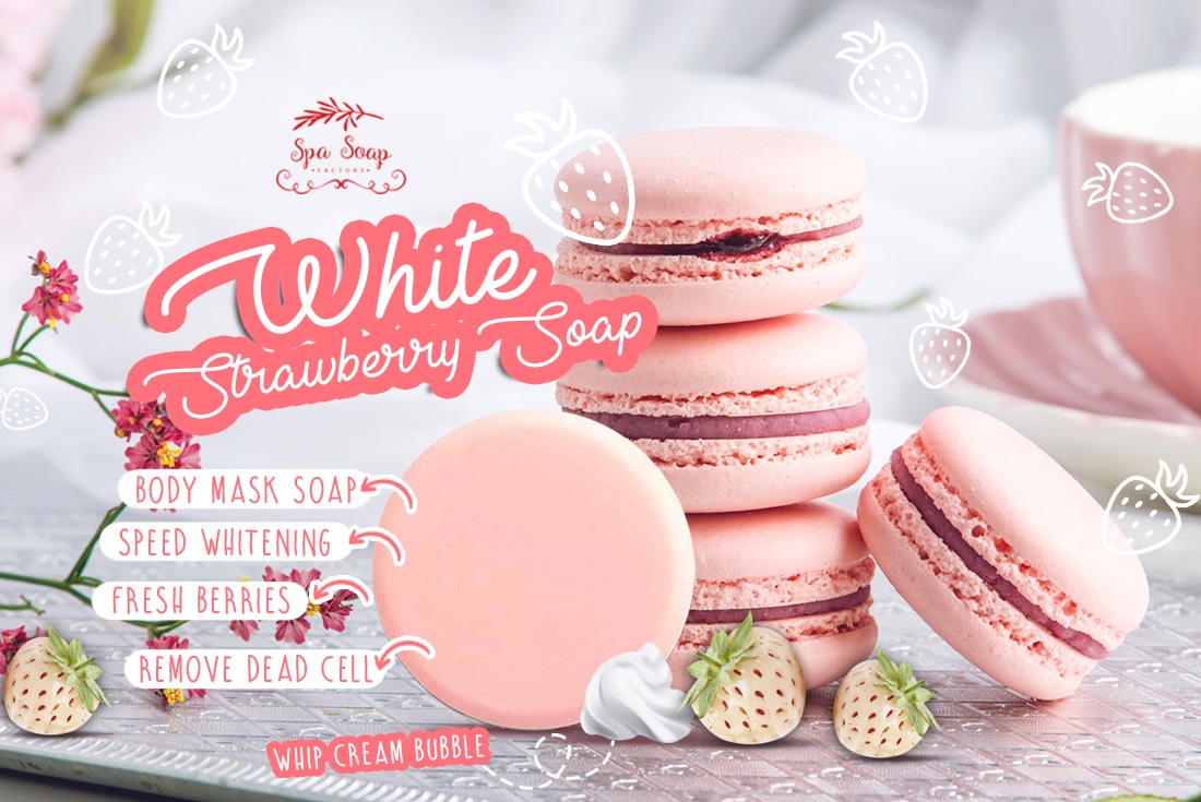 สบู่มาร์คผิว สูตรสตรอเบอรี่ขาว นมสด ตัวนี้เร่งขาวเต็มโดสเลยนะคะ*✨